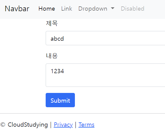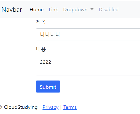 앞서 구성한 웹페이지에서 submit 버튼을 누른다고 아무것도 되지 않는다.