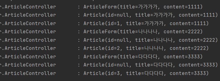 articleEntity에 담긴 데이터를 모델에 등록해 보겠습니다.