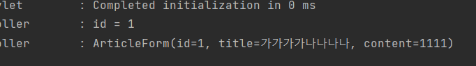 컨트롤러에서 수정된 데이터를 받은 것을 확인할 수 있습니다.