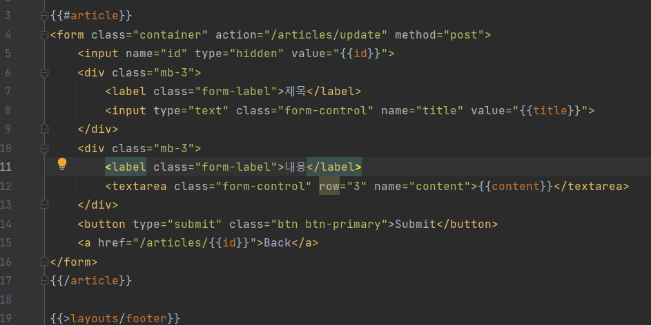 여기까지 DB에 저장된 데이터를 가져와 수정 페이지에 출력하는 과정을 실습했습니다~